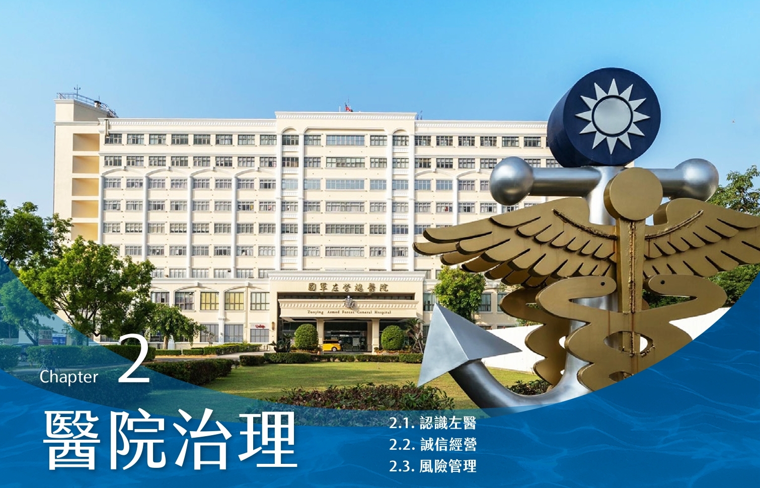 國防部軍醫局目前轄下共有14所國軍醫院,包括6間總醫院與8間分院,左醫即為其中之一。本院院長(少將)與副院長(上校)由國防部軍醫局依據相關規定遴選派任,院長為醫院最高治理階層,負責全面領導與決策。院長、副院長及民眾診療服務處主任共同帶領行政與醫療部門,協調醫院營運與管理,確保醫療服務品質與效率。