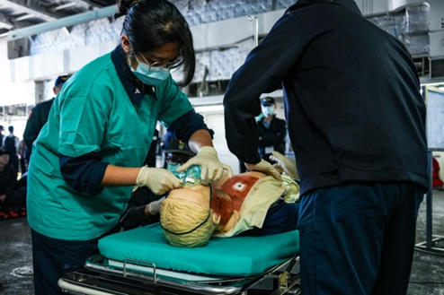 此小組具備機動派遣能力,能於前線環境中執行初步手術處置與傷勢穩定作業,使重傷官兵即使無法立即後送,仍可於第一時間獲得緊急處置,有效延長黃金救援時間,提升存活機率。2024年,本院與海軍磐石軍艦成功完成「艦艇醫療艙間手術演練」,充分展現FRSD小組在平時訓練與實戰整備上的成果與戰備能力,持續強化本院於軍陣醫學中的關鍵支援角色。