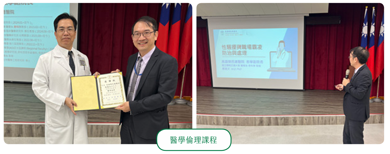 本院訂定了醫事人員職業倫理守則,並明確規範病人權利政策,旨在提升醫療服務品質與病人福祉。透過實際個案的臨床討論、互動式教學、研讀臨床倫理書刊及參與座談會,本院不僅讓病人清楚了解自身權利,同時也將臨床倫理觀念深植於醫事人員的日常醫療服務中。2024年,舉辦了2場個案臨床討論、1場醫學倫理課程,持續促進醫事人員對臨床倫理的深刻理解