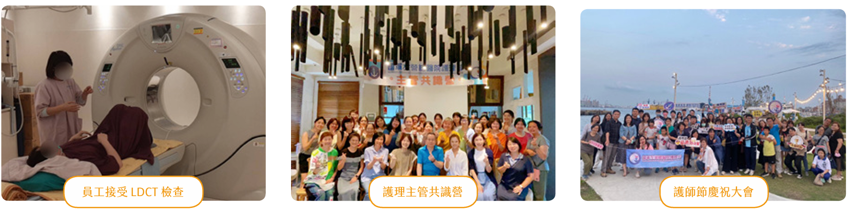 在健康照護方面,本院特別關懷員工福祉,針對40歲以上員工提供免費的低劑量肺部斷層掃描(LDCT)及心臟血管鈣化分析,以促進早期健康管理。