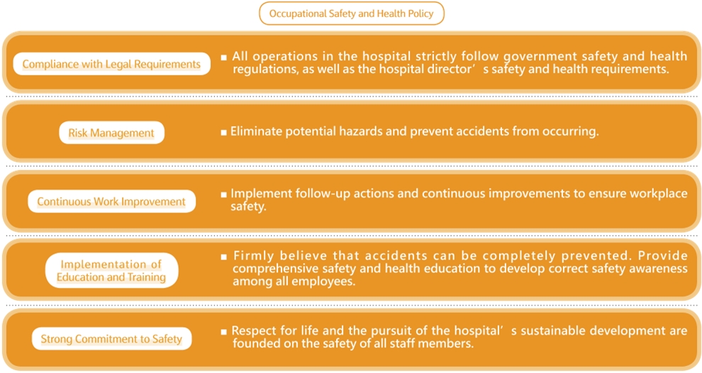 Upholding the core values of “loyalty and responsibility, treating patients like family,” Zuoying Armed Forces General Hospital remains committed to a people-centered service philosophy. On the foundation of legal compliance, we continuously improve our safety and health management systems. We are committed to following all regulatory requirements, actively promoting risk management and continuous improvement in the workplace. We firmly believe that education and training are essential to ensuring the safety of both employees and patients. Therefore, we continuously enhance professional training for staff to ensure that every member is equipped to handle various challenges, while creating a safer and healthier working environment—fulfilling our responsibility and care toward both patients and employees.
