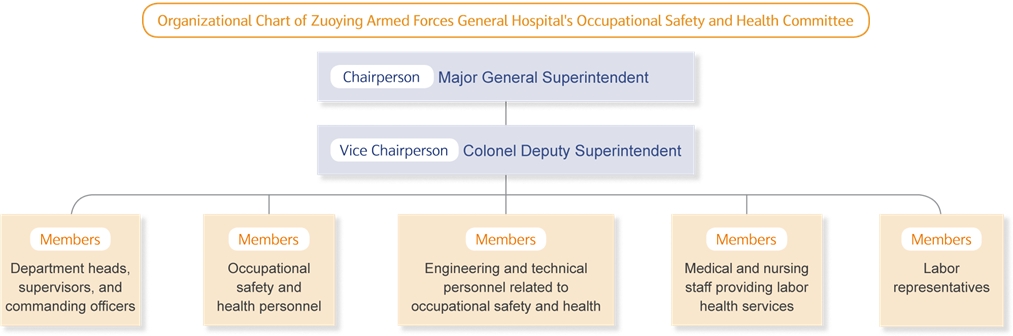 To prevent occupational injuries and protect the safety and health of employees, Zuoying Hospital established an Occupational Safety and Health Committee in accordance with the Occupational Safety and Health Act. The committee is chaired by the hospital superintendent, with the deputy superintendent of administration serving as the vice chair. The committee consists of 21 members, with more than one-third representing labor. The committee holds meetings once every quarter to discuss and provide suggestions on safety and health policies, as well as to review, coordinate, and raise safety-related matters. All review outcomes are announced through the hospital affairs meetings and the occupational safety section on the internal website to ensure that employees are well-informed and can jointly maintain a safe and healthy working environment. Due to administrative oversight, only one meeting was held in the fourth quarter of 2024, instead of four meetings throughout the year. The hospital plans to introduce and obtain ISO 45001 certification in 2025 to improve and enhance the execution and management of occupational safety and health practices.