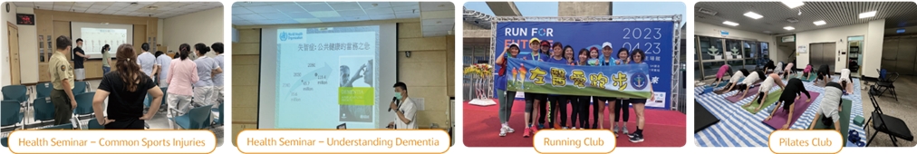 Zuoying Armed Forces General Hospital also follows the guidance of the Health Promotion Administration, Ministry of Health and Welfare, to regularly hold health seminars on topics such as sports injury prevention, understanding dementia, body management, and healthy eating out. In 2024, a total of five health seminars were held to enhance employees’ health awareness and self-care abilities. To further support the physical and mental well-being of staff, employees actively formed Yoga, Pilates, Running, and Badminton clubs, and are encouraged to participate in exercise and wellness activities after work on Tuesdays and Thursdays, as well as on Saturday mornings. These activities not only help create a healthy and positive workplace culture but also improve employees’ physical and mental health through exercise, while strengthening team cohesion and collaboration.