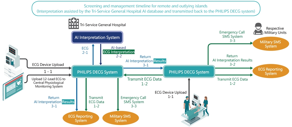 Screening and management timeline for remote and outlying islands(Interpretation assisted by the Tri-Service General Hospital AI database and transmitted back to the PHILIPS DECG system)