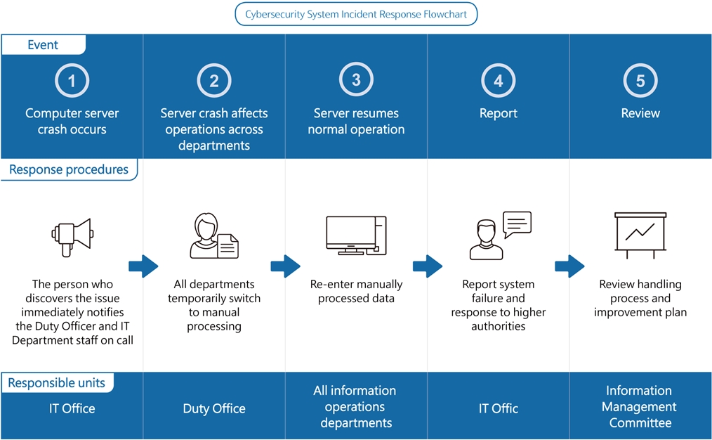 In accordance with the Ministry of National Defense’s classification of cybersecurity responsibility levels, our hospital is designated as a Level B unit. As such, we are required to comprehensively implement cybersecurity management across three key dimensions, namely management, technical, and awareness and training.