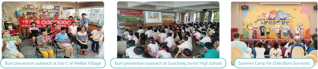In addition to providing comprehensive inpatient medical care, the Burn Center is also committed to burn prevention and health promotion. The team actively engages in educational outreach across schools, communities, and workplaces to raise awareness among child caregivers and the general public regarding proper burn prevention and first aid practices. These efforts also aim to reinforce the understanding of fire and electrical safety, as well as burn prevention and emergency response among elementary and junior high school students and communities. In 2024, the center organized 10 burn prevention education sessions, reaching a total of 750 participants. Since 1996, the hospital has collaborated with the Childhood Burn Foundation of the Republic of China to host annual summer camps for children with burn injuries. Through outdoor activities and group interaction, the camps help young burn survivors rebuild self-confidence, enhance social skills, reintegrate into school life, and support their holistic physical and psychological recovery.